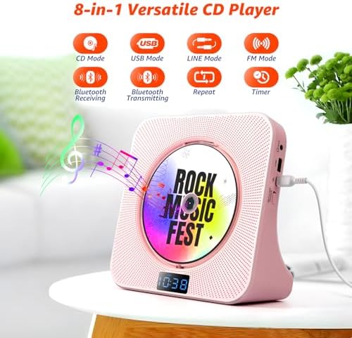 The ROADOM CD player is your all-in-one audio solution, boasting 8 versatile functions: CD playback, Bluetooth transmitting and receiving, FM radio, USB playback, AUX connectivity, timer, and repeat options. It supports multiple CD formats, including CD, CD-R, CD-RW, MP3, and WMA, providing compatibility for all your favorite music.