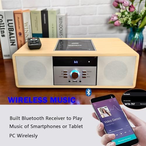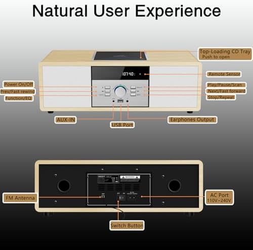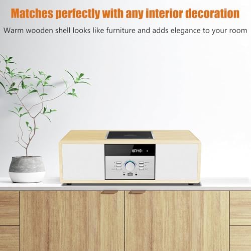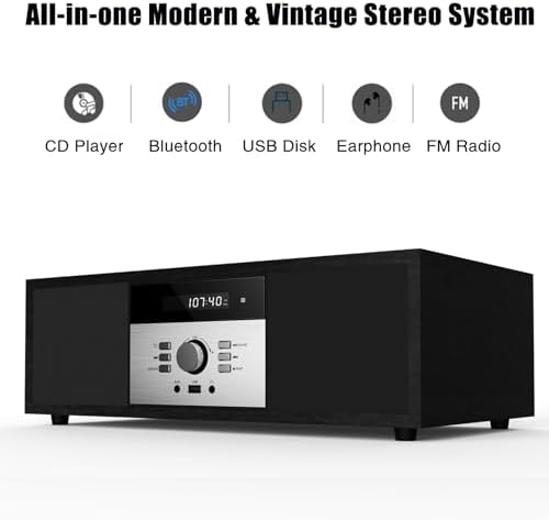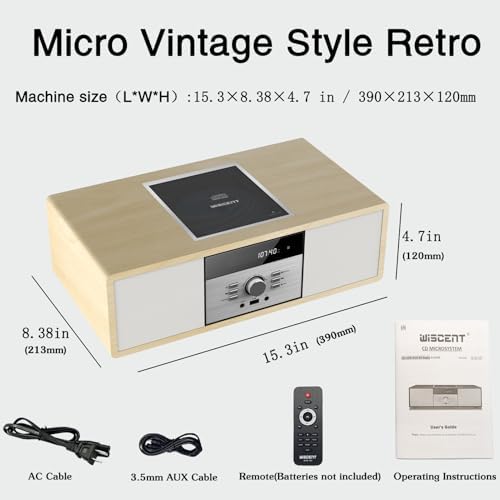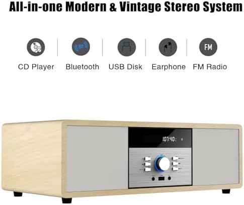 “WISCENT Vintage Micro HiFi Stereo System – Bluetooth CD Player with FM Radio, USB, AUX & Earphone Ports – Ideal for Hom