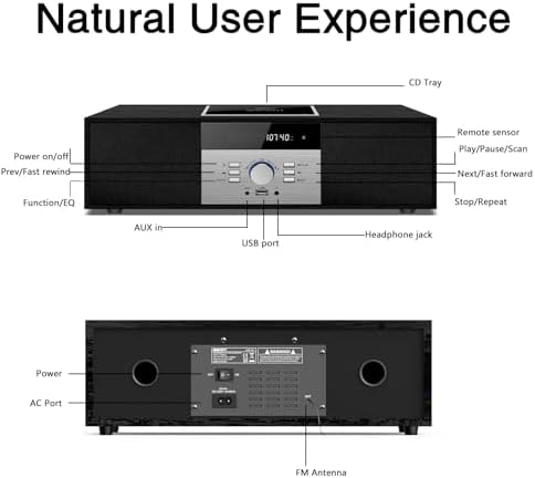 Experience superior sound quality with our All-in-One Micro Multimedia Player. This compact system combines wireless Bluetooth streaming, a CD player, MP3 playback, USB support, headphone jack, AUX-in, and FM radio—all in one stylish design.